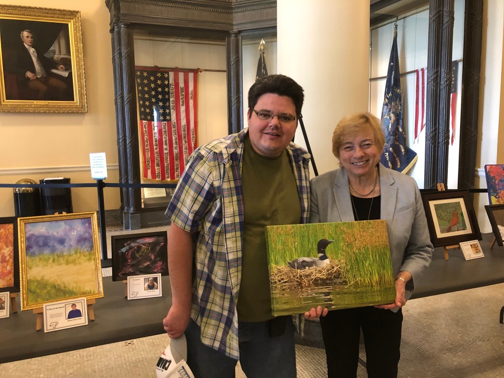 CW Hunt meets Governor Janet Mills during the Lest We Forget Show in the Hall of Flags at the Capital building in Augusta, Maine.